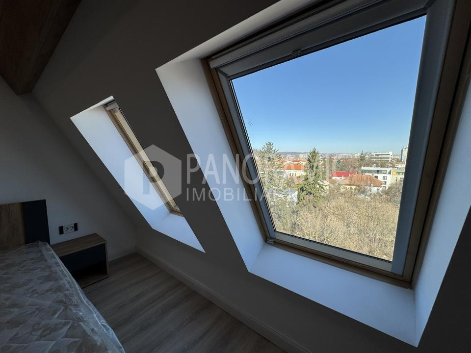 ✔ Terasă comună cu priveliște panoramică vestică spre zona Platinia și Cluj Arena – ideală pentru relaxare