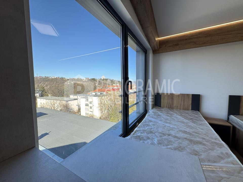 ✔ Terasă comună cu priveliște panoramică vestică spre zona Platinia și Cluj Arena – ideală pentru relaxare