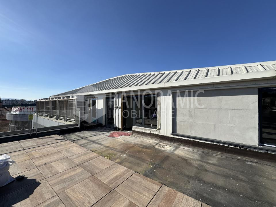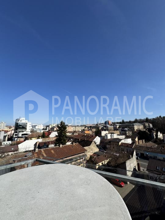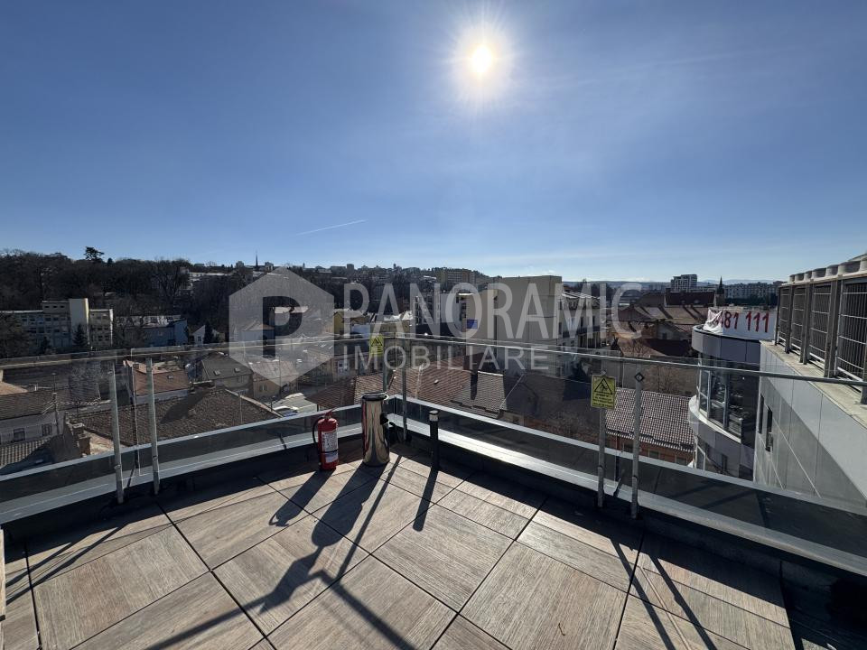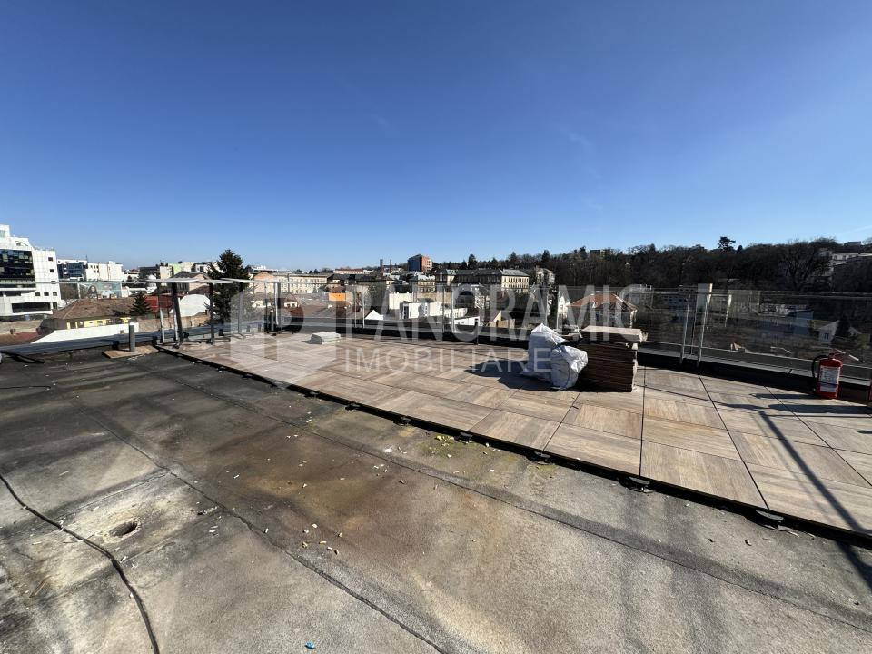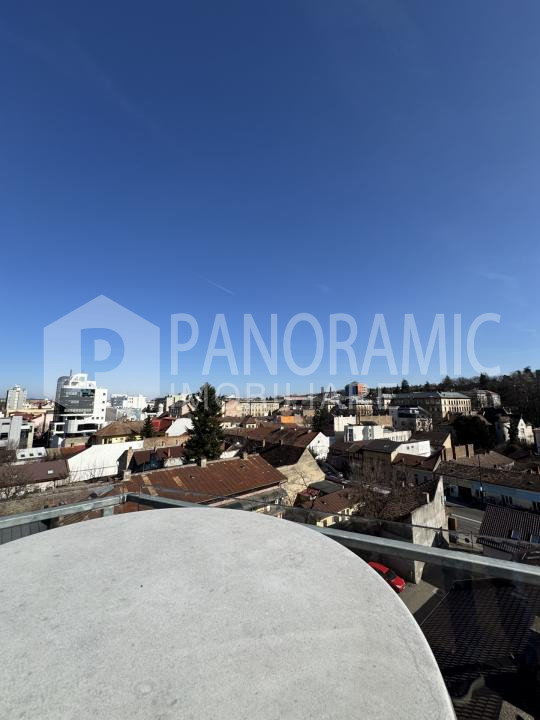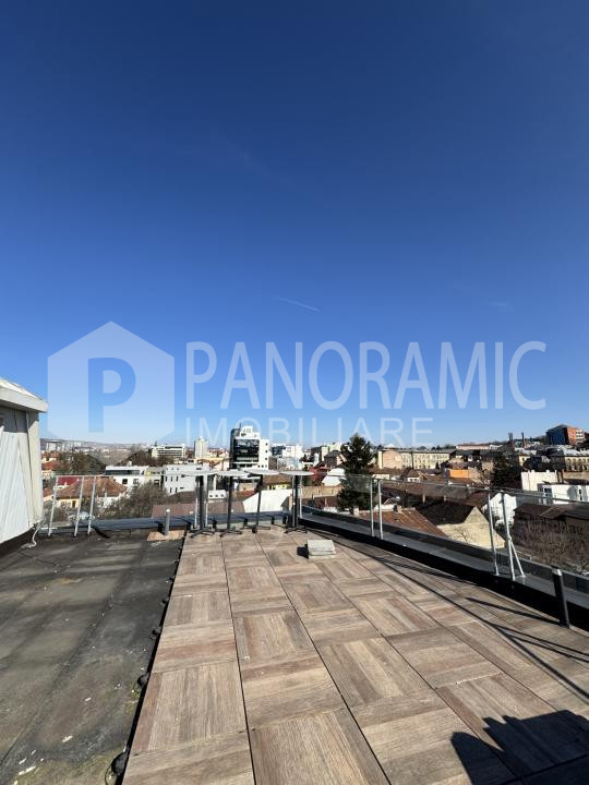✔ Terasă comună cu priveliște panoramică vestică spre zona Platinia și Cluj Arena – ideală pentru relaxare